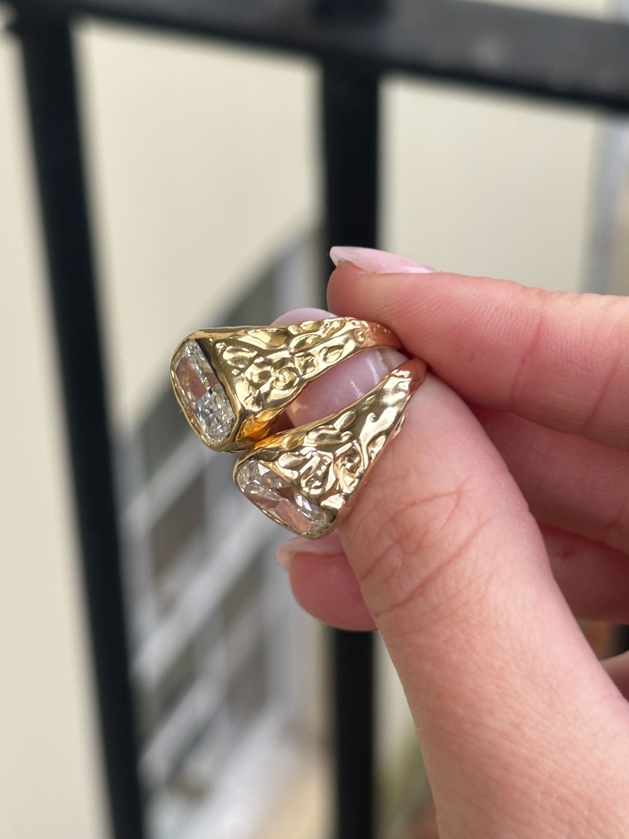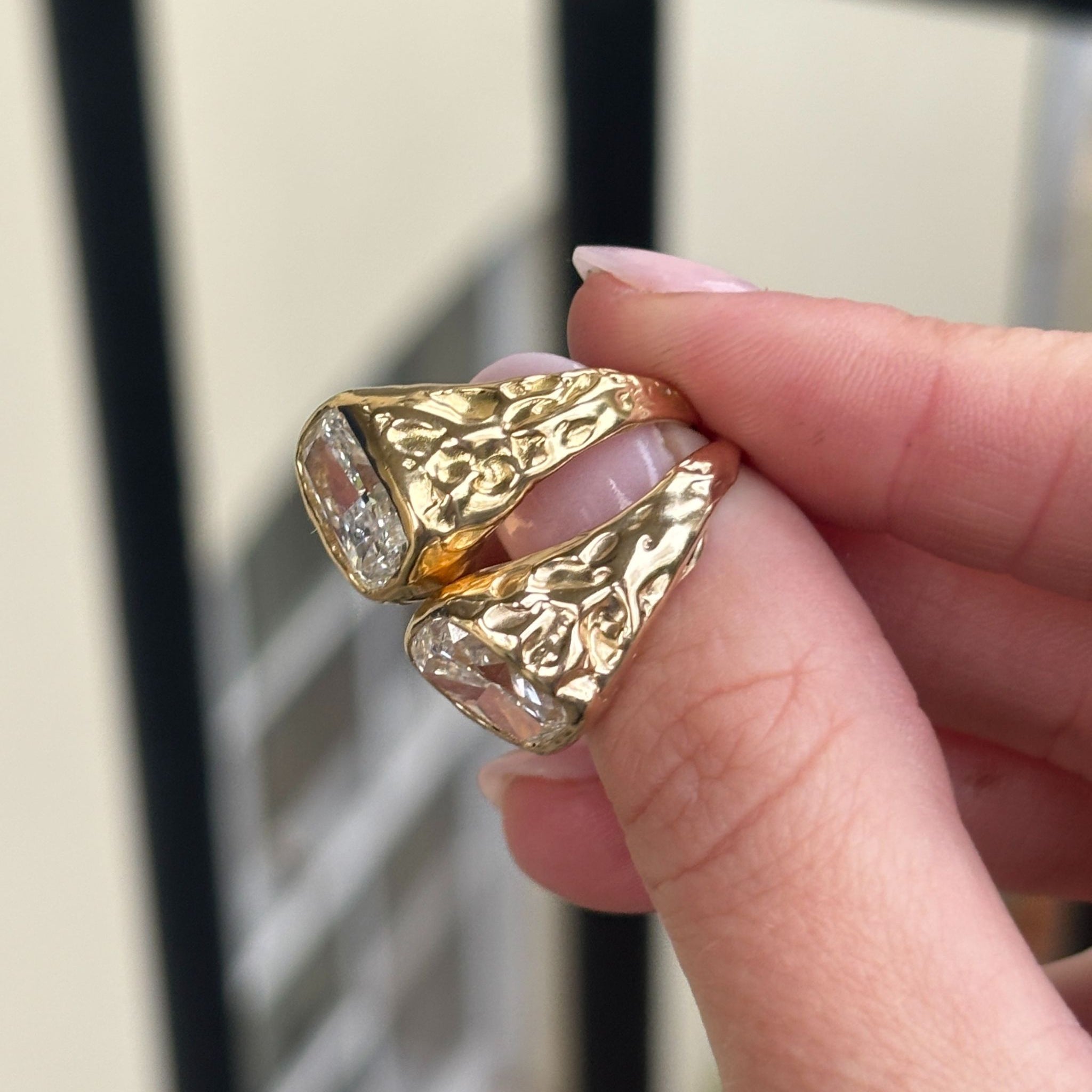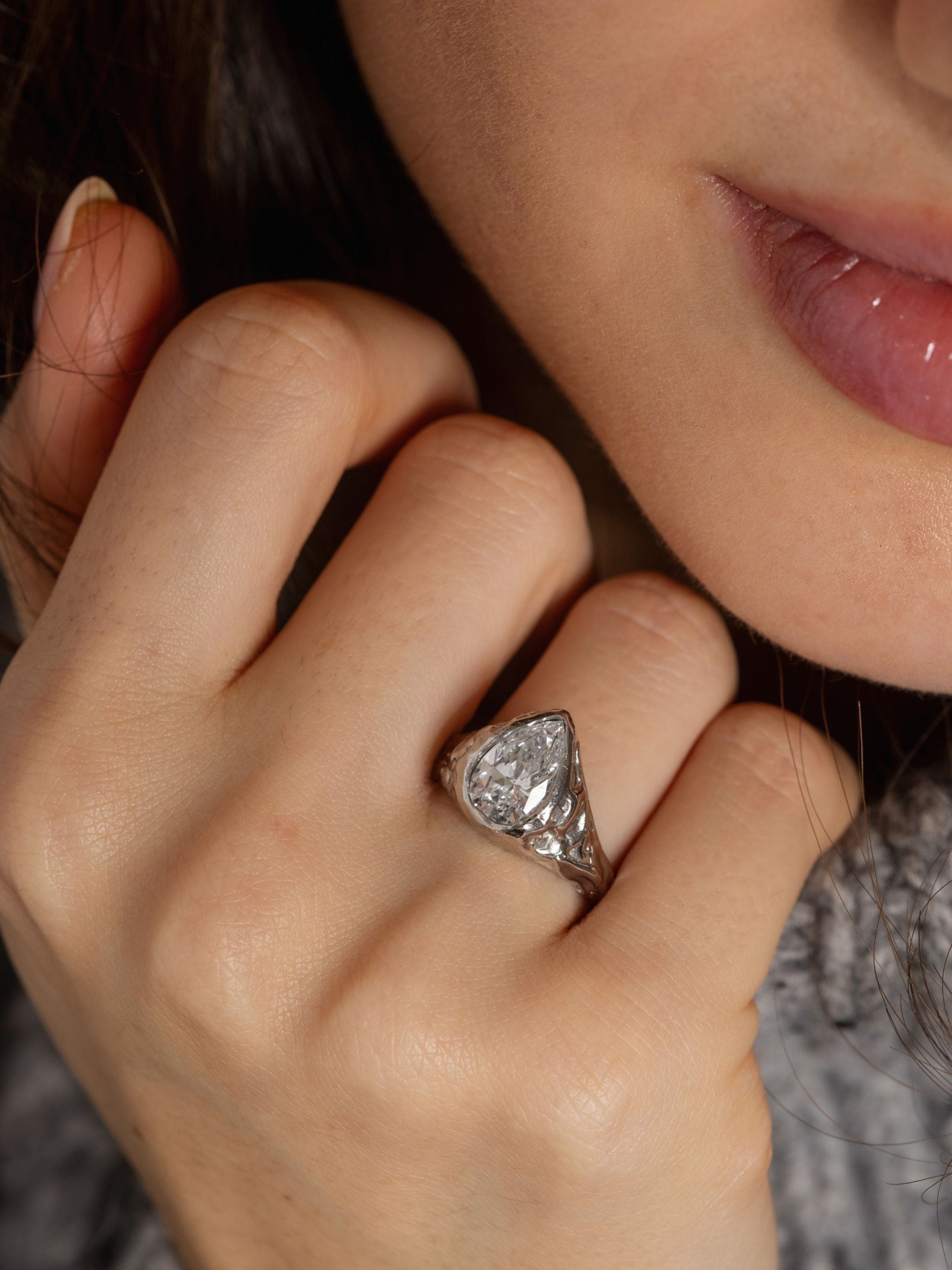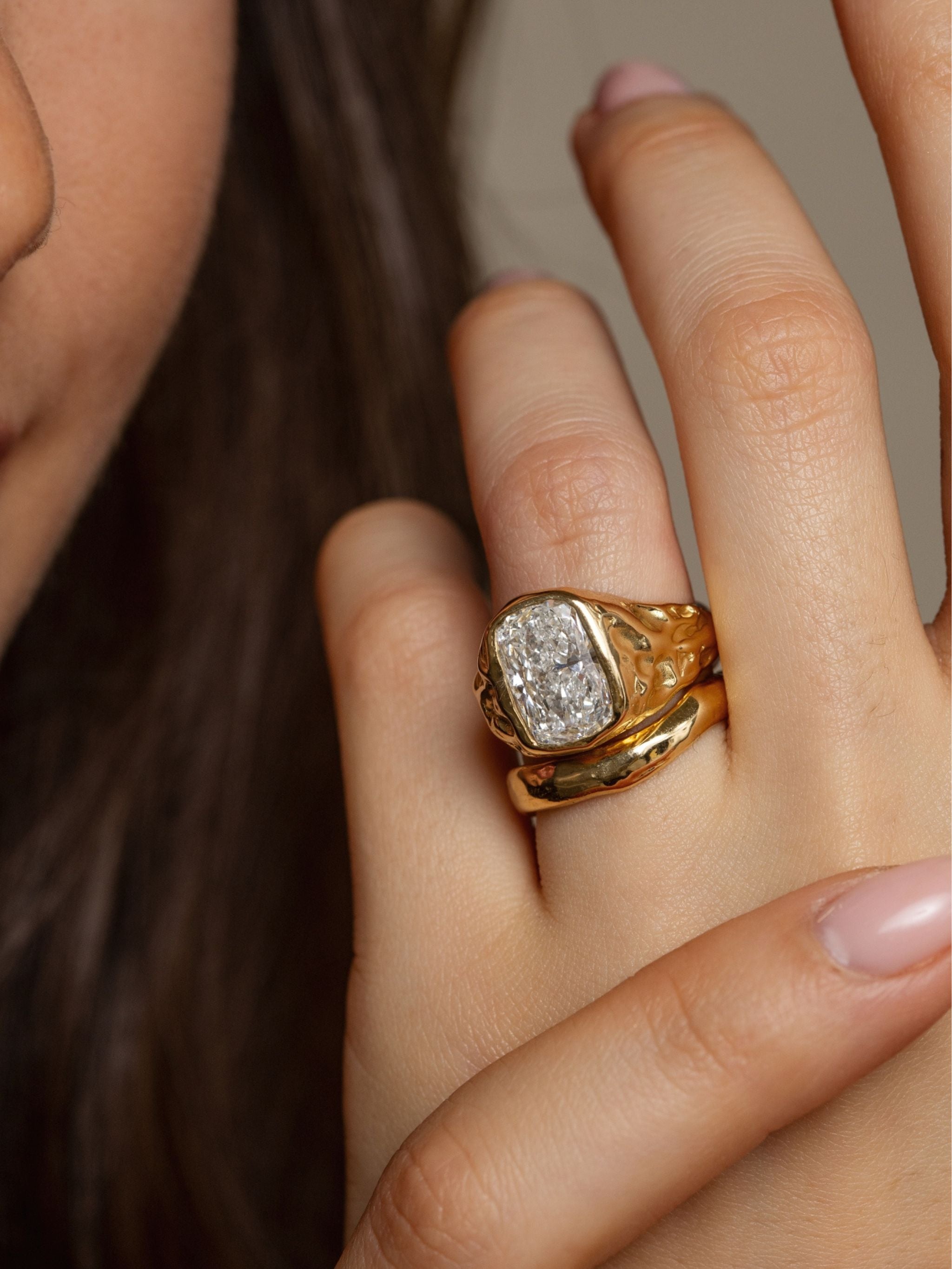 Engagement rings handcrafted in London’s historical jewellery quarter, Hatton Garden. Every piece is designed and made end to end by hand by Olivia, using precious metals and thoughtfully chosen stones.