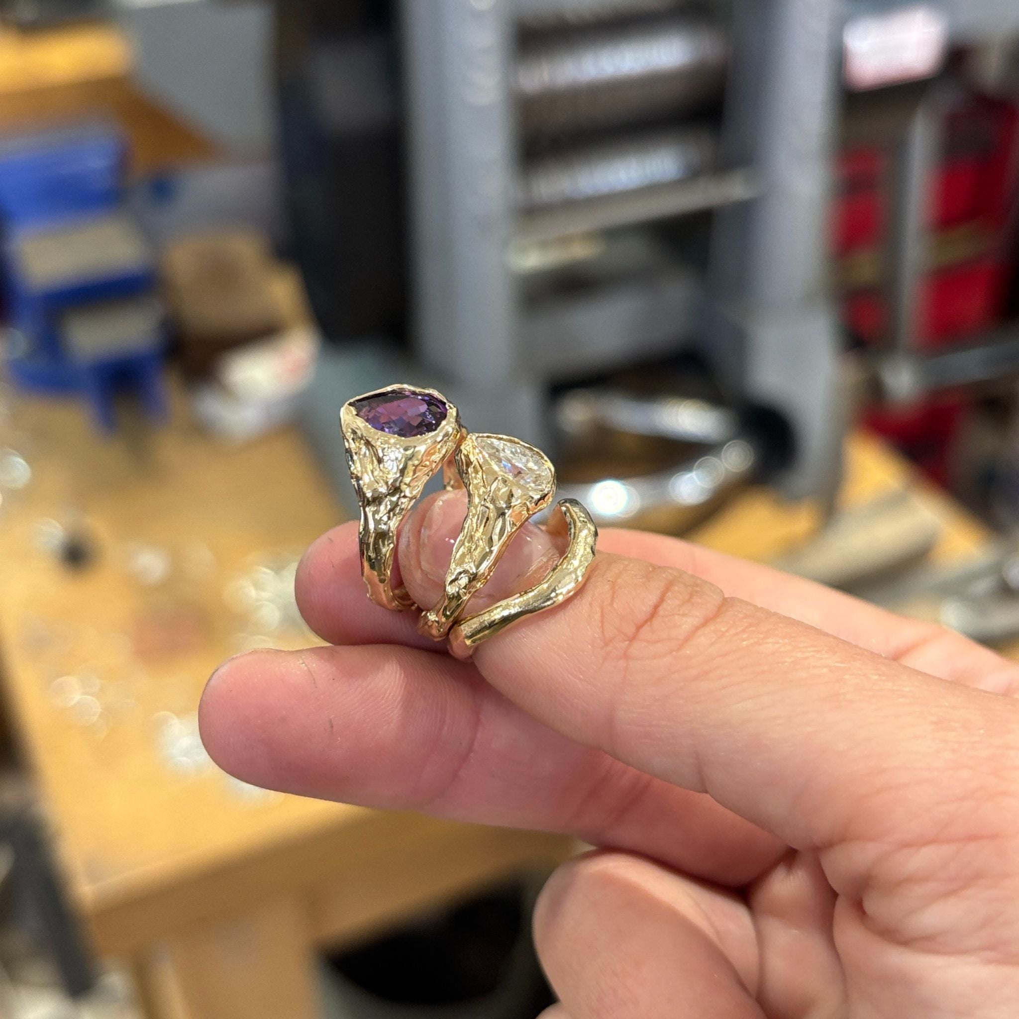 Every piece is made end to end by me! For particularly complex designs, I collaborate with a professional setter, but I primarily set stones myself.