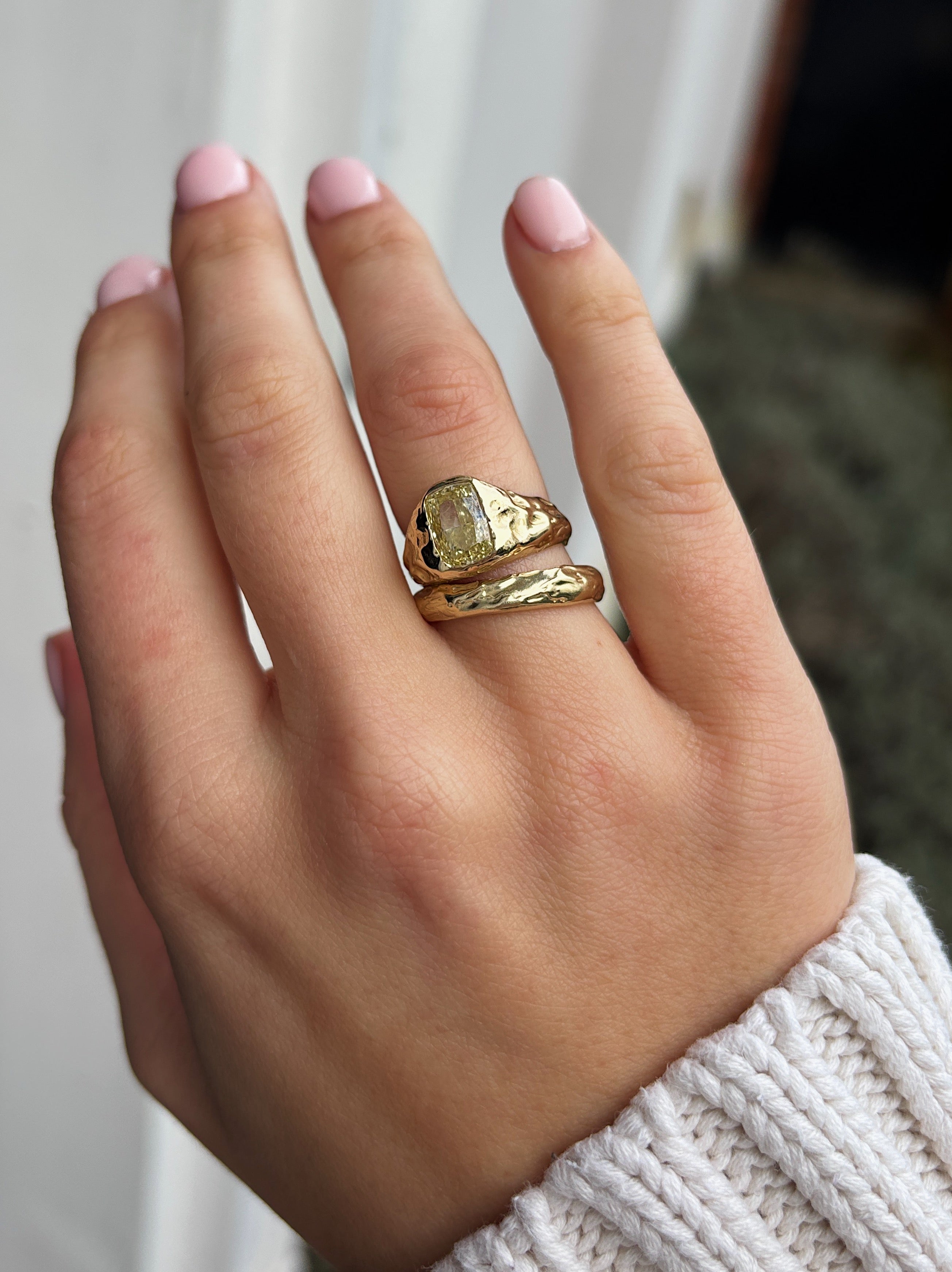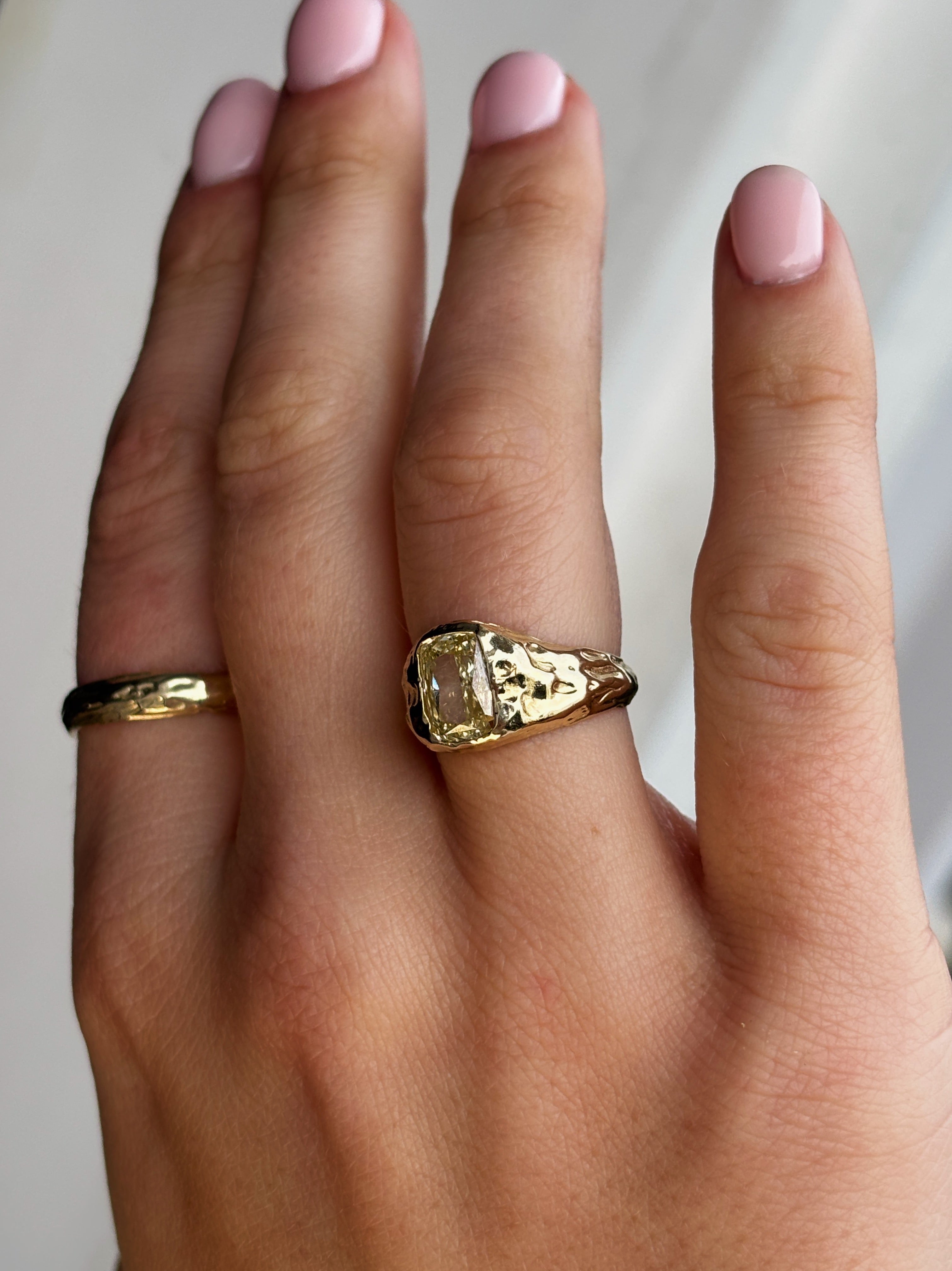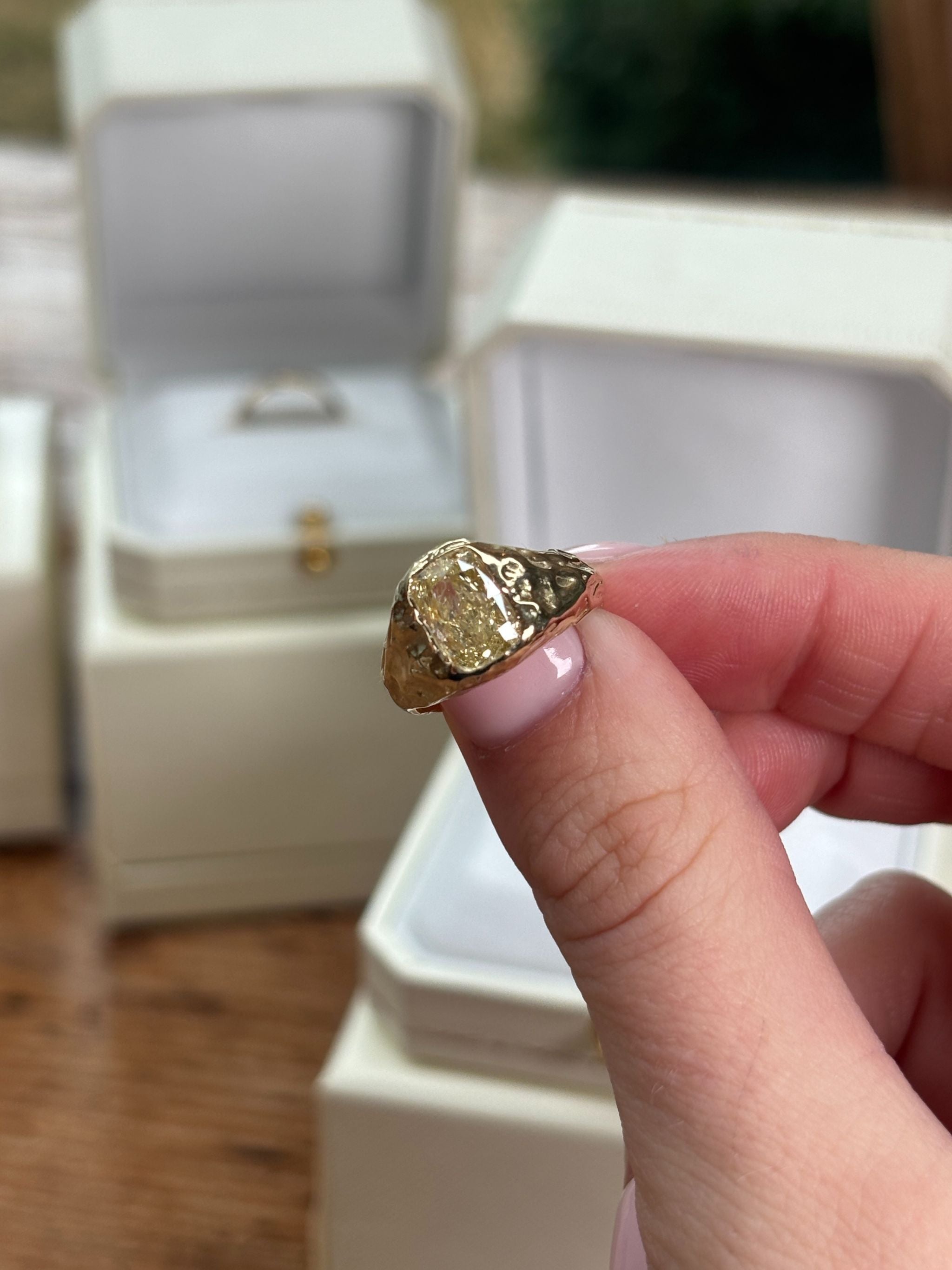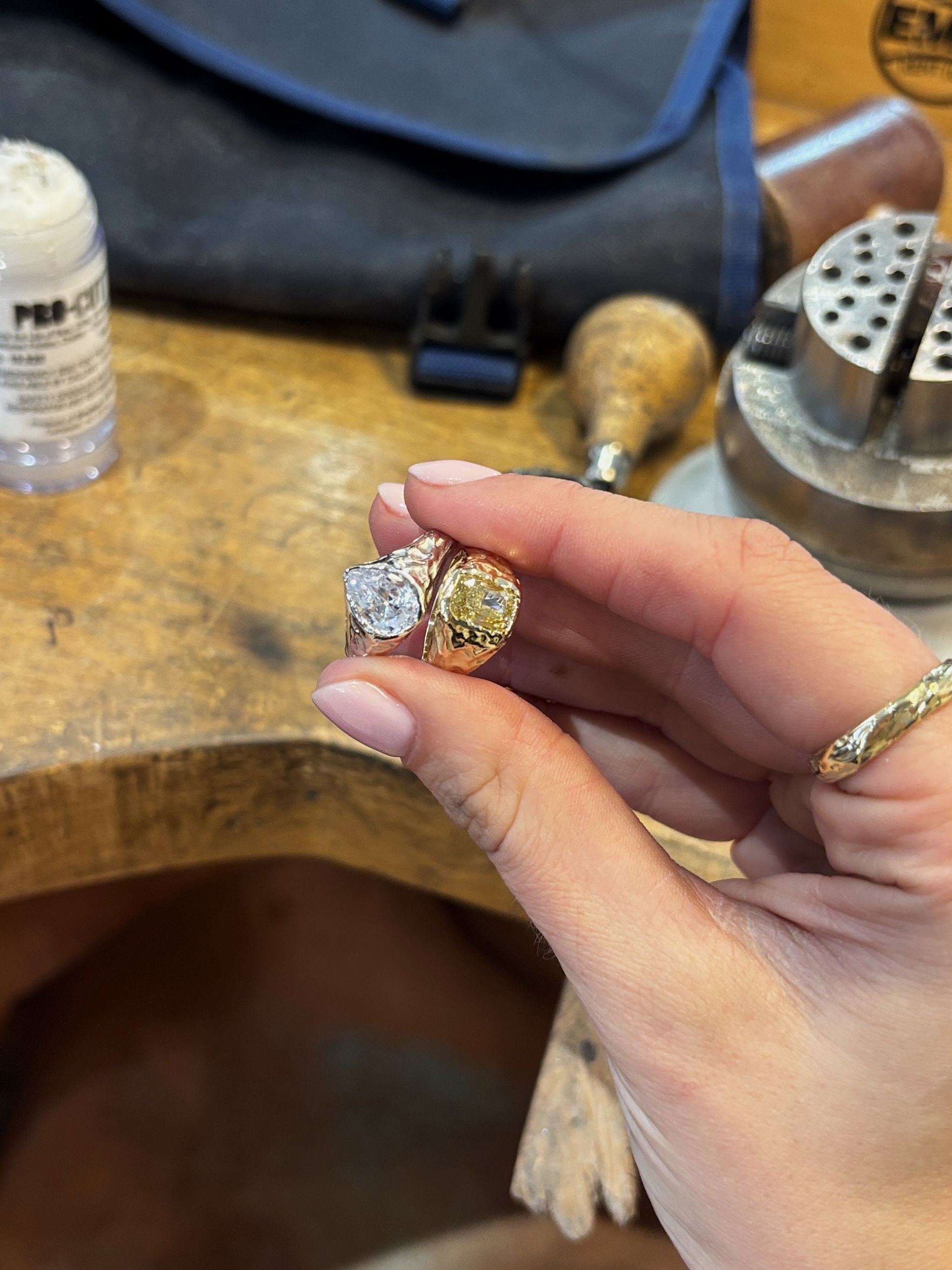 Every piece is made end to end by me! For particularly complex designs, I collaborate with a professional setter, but I primarily set stones myself.