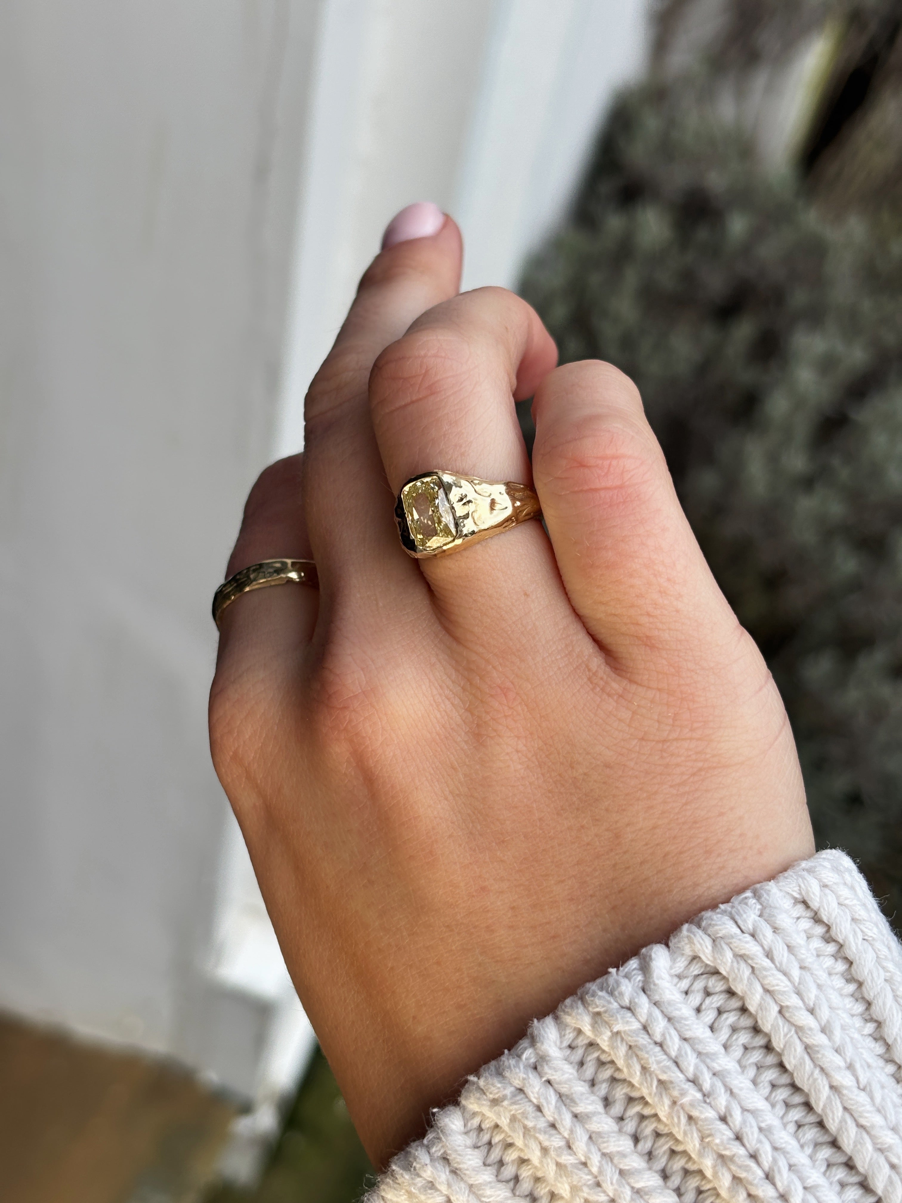 I work with precious metals including silver, gold and platinum, and I always favour lab grown diamonds alongside carefully selected gemstones sourced from trusted suppliers. Almost all pieces are made to order, helping to reduce unnecessary waste and overproduction. Every piece is designed, sourced and made in Hatton Garden, London, allowing me to closely oversee the entire process from start to finish.