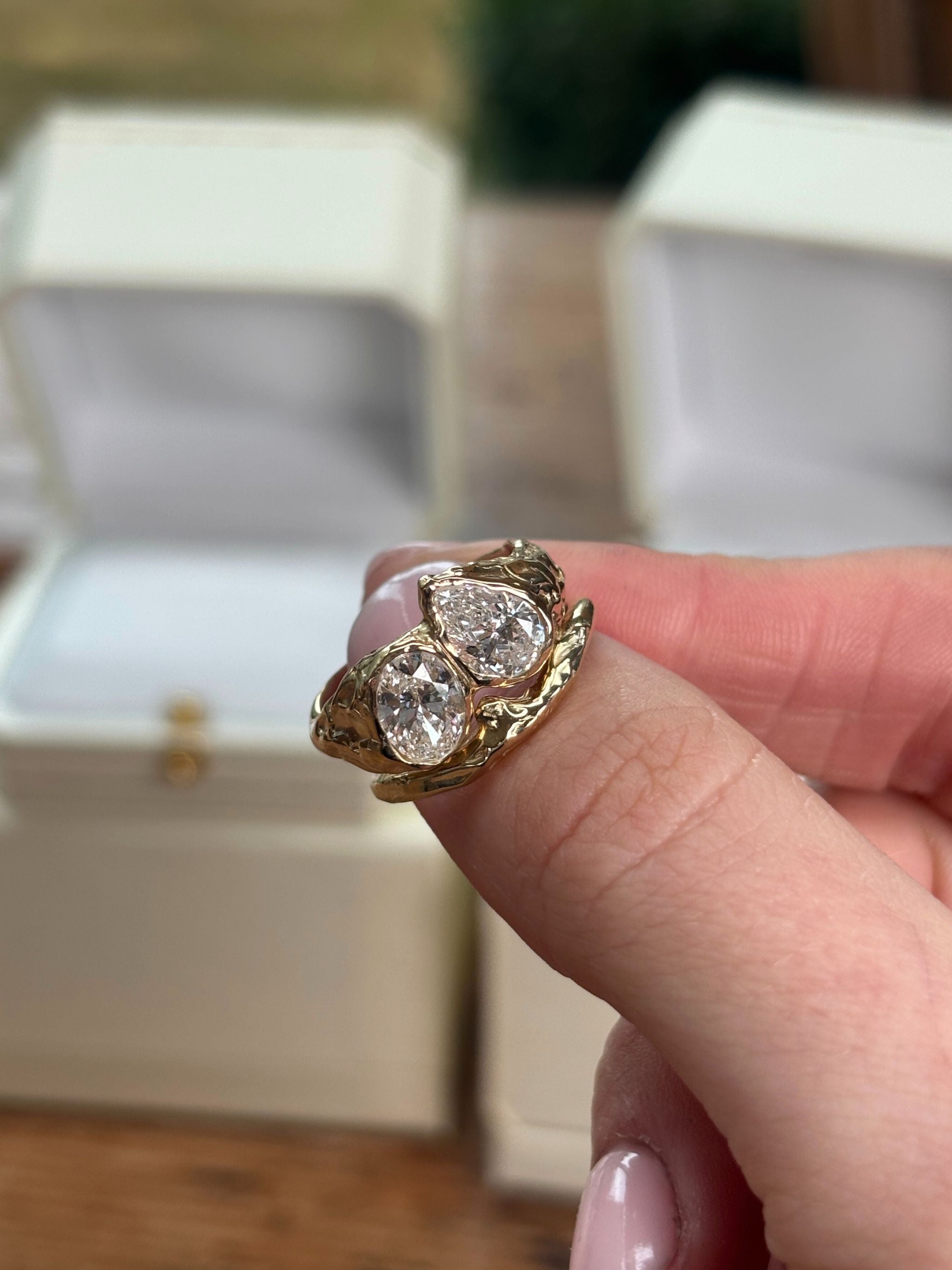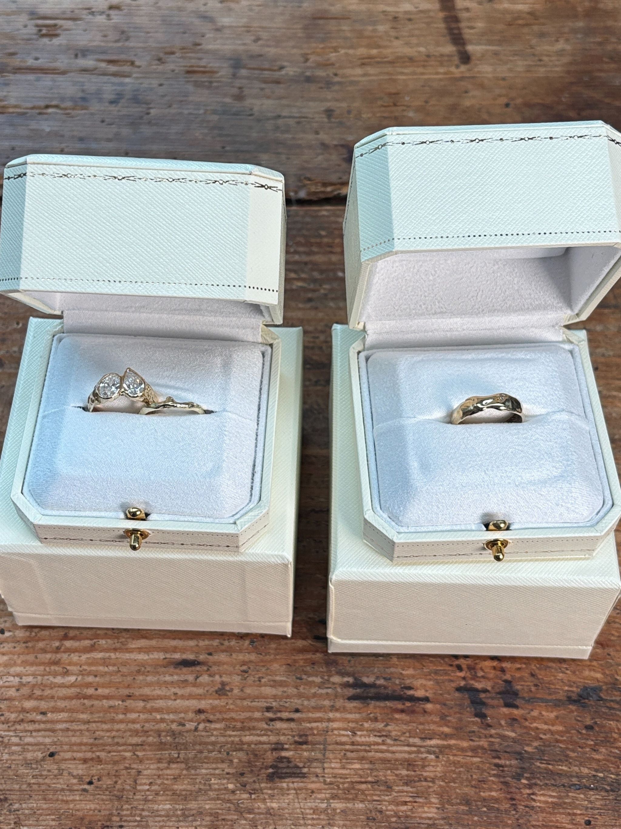 Every piece is made end to end by me! For particularly complex designs, I collaborate with a professional setter, but I primarily set stones myself.