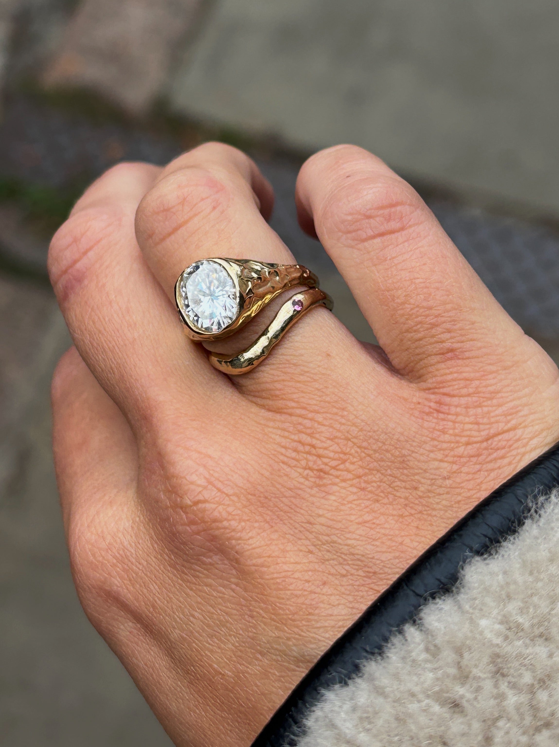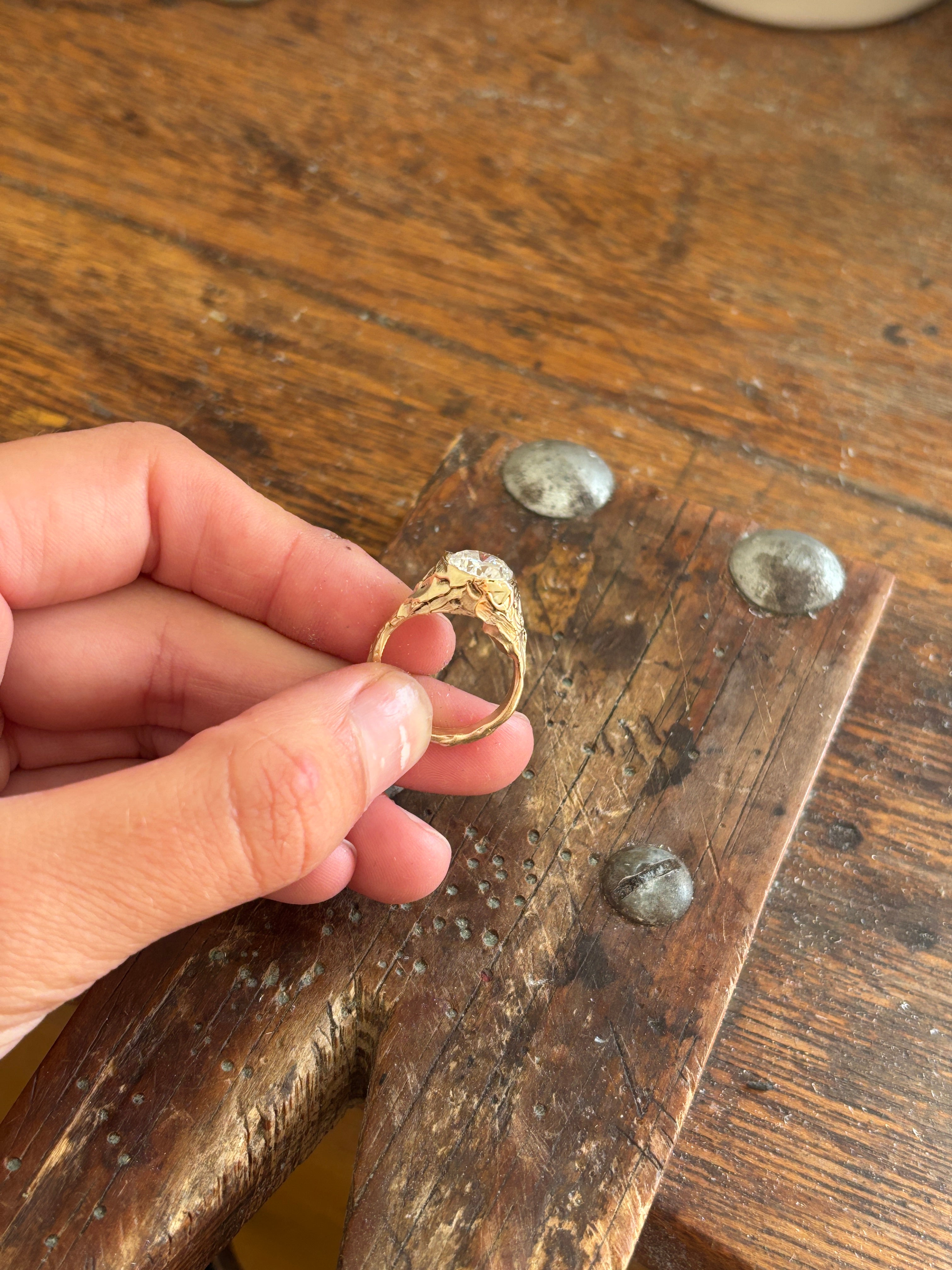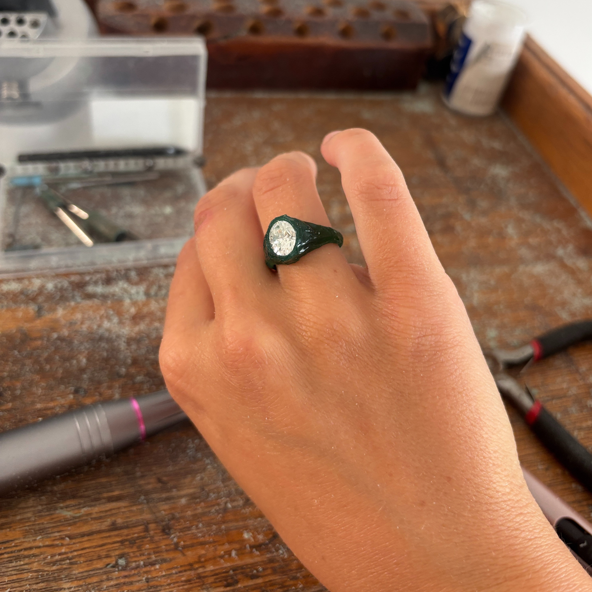 Every piece is made end to end by me! For particularly complex designs, I collaborate with a professional setter, but I primarily set stones myself.