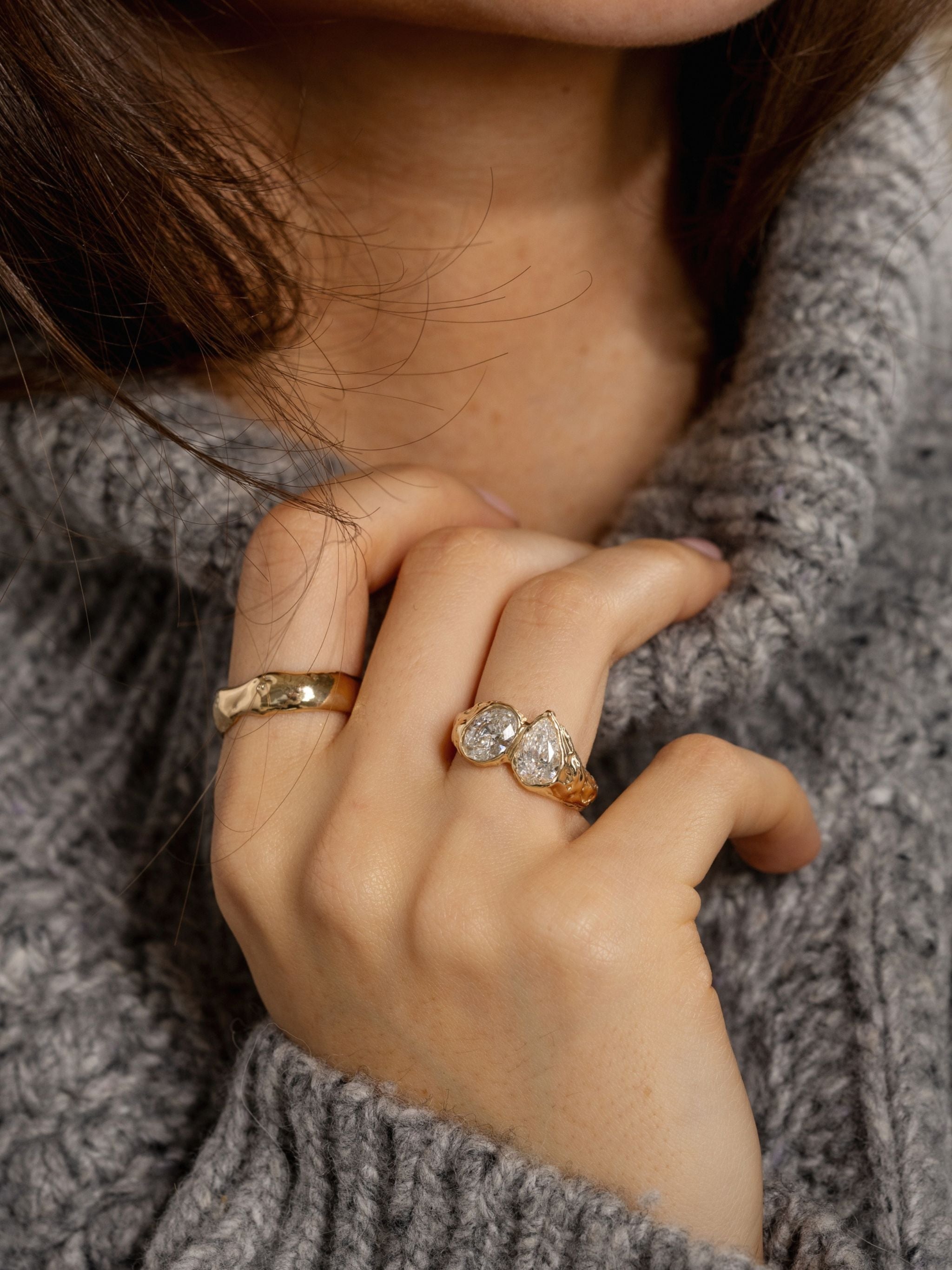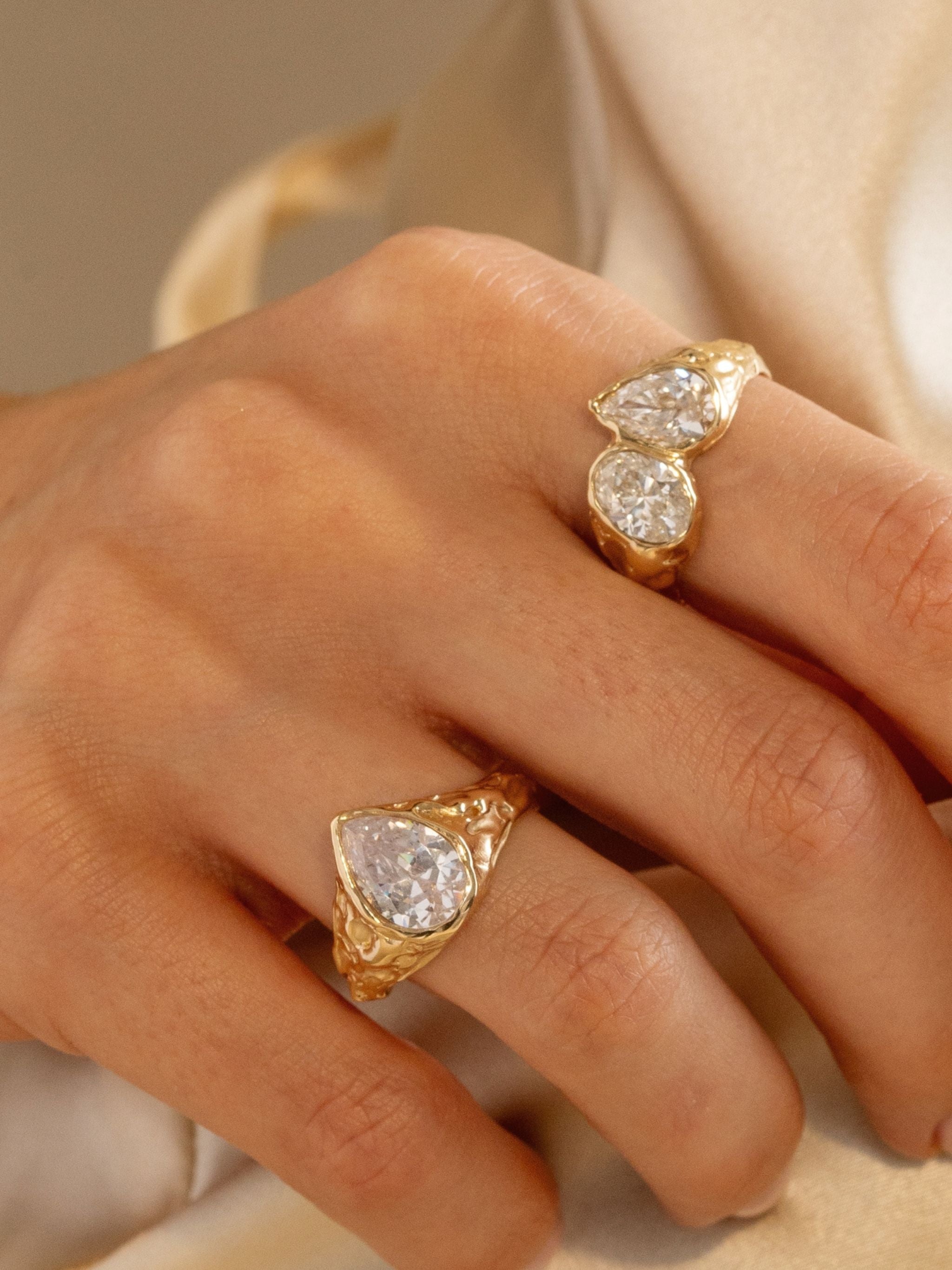 I work with precious metals including silver, gold and platinum, and I always favour lab grown diamonds alongside carefully selected gemstones sourced from trusted suppliers. Almost all pieces are made to order, helping to reduce unnecessary waste and overproduction. Every piece is designed, sourced and made in Hatton Garden, London, allowing me to closely oversee the entire process from start to finish.